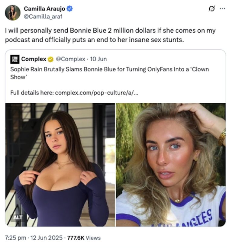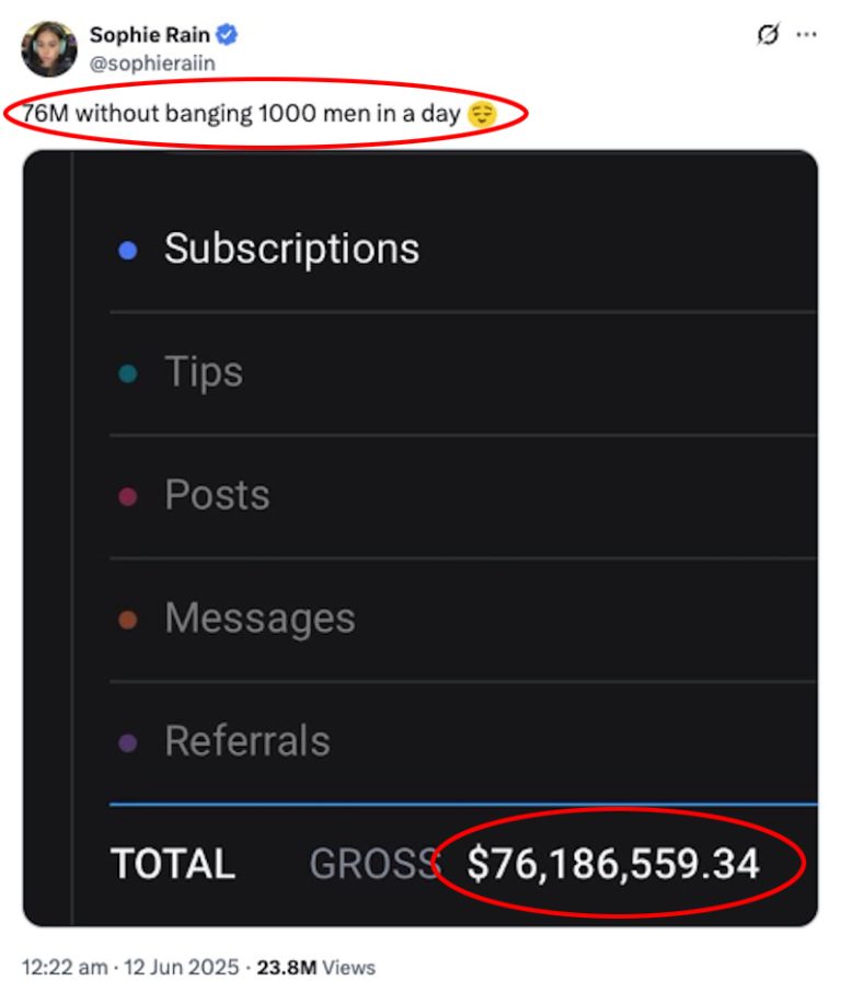 من دون أن تسميها مباشرة، نشرت صوفي تغريدة مع صورة تُظهر ما يبدو أنه واجهة حسابها الرسمية على OnlyFans تتضمن أرباحها الضخمة، ما اعتبره كثيرون “ردًا ناعمًا لكنه ساخر” على بوني، المعروفة بحملاتها الجنسية المثيرة للجدل.